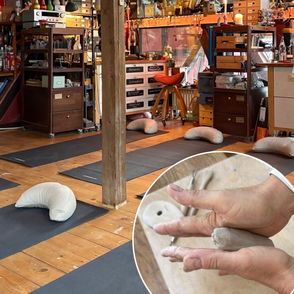 Sanftes Yoga trifft auf kreatives Töpfern.